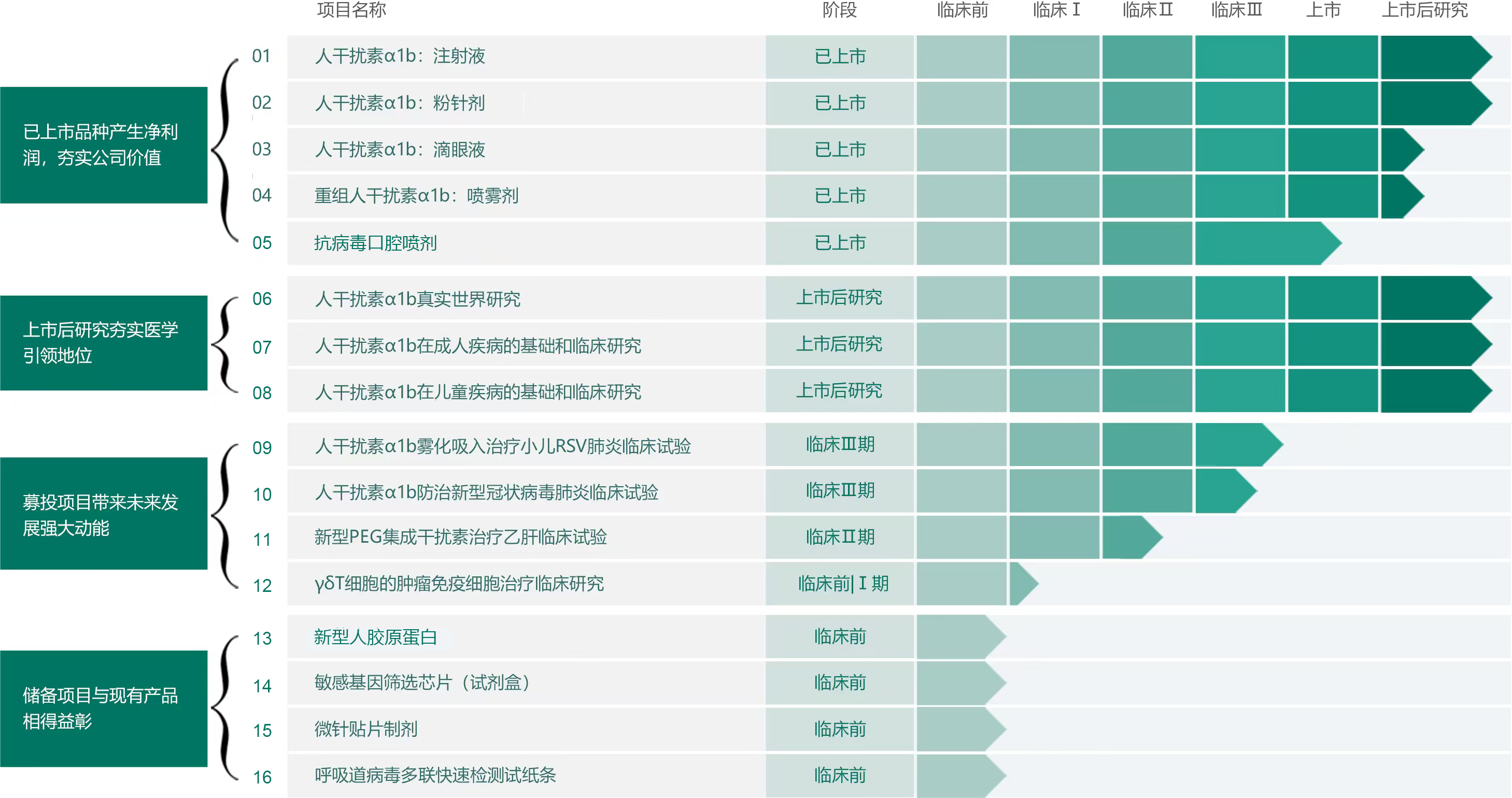 通過(guò)大腸桿菌重組蛋白表達(dá)系統(tǒng)的載體優(yōu)化、發(fā)酵工藝優(yōu)化與純化工藝優(yōu)化等技術(shù),在國(guó)內(nèi)率先創(chuàng)新制造出包括人干擾素 α1b、α2a、α2b 等在內(nèi)的多種干擾素亞型,在中國(guó)市場(chǎng)上打破了進(jìn)口干擾素的市場(chǎng)壟斷和價(jià)格高企局面。