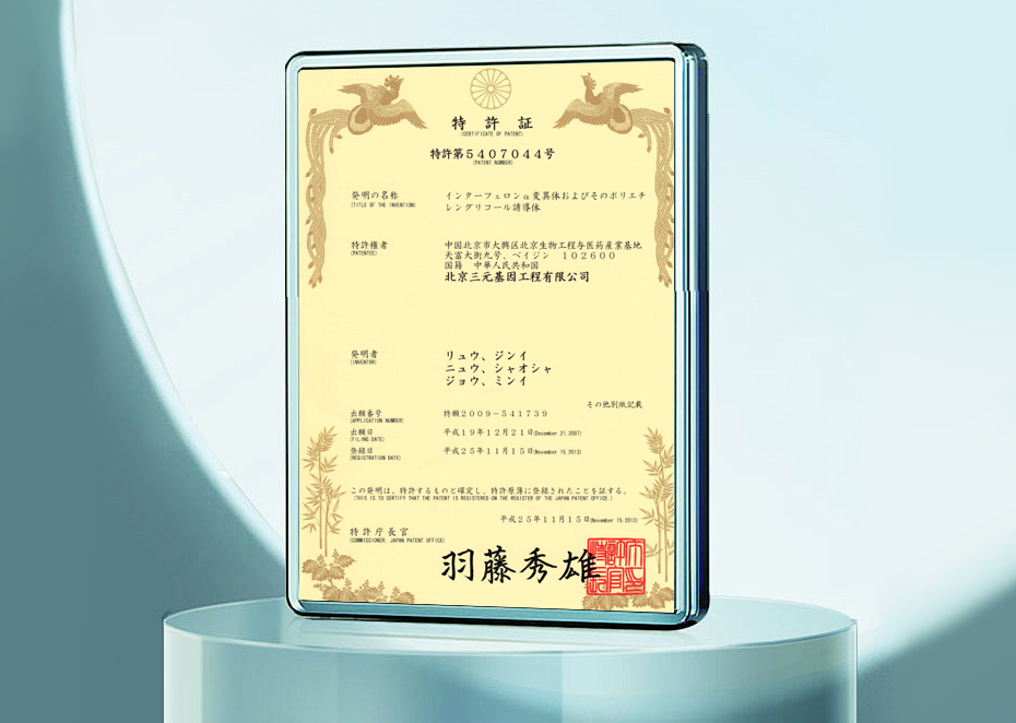 發明專利證書-一種聚乙二醇化干擾素穩定的水溶液