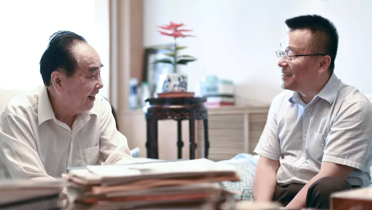 資料圖:侯云德與三元基因藥業(yè)股份有限公司總經(jīng)理程永慶交流